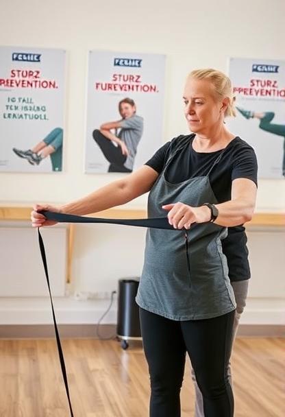 Gleichgewichtstraining: Dies ist ein Kernstück der personenbezogenen Sturzprävention. Gleichgewichtstraining umfasst spezifische Übungen, die darauf abzielen, die Standfestigkeit, die Balancefähigkeit und die sensomotorische Koordination zu verbessern. Beispiele sind Übungen im Einbeinstand, der Tandemgang (Fußspitze direkt vor Ferse setzen), Gehen auf verschiedenen Untergründen, Übungen mit geschlossenen Augen oder auf instabilen Flächen (z.B. Balance-Pad). Das Training wird individuell an das Leistungsniveau angepasst und schrittweise gesteigert. [Quelle: 3, 9] - Kräftigungsübungen: Eine ausreichende Muskelkraft, insbesondere in den Beinen und im Rumpf, ist essenziell für Stabilität und Mobilität. Die Ergotherapie integriert daher gezielte Kräftigungsübungen, die relevante Muskelgruppen stärken. Dies können Übungen mit dem eigenen Körpergewicht (z.B. Kniebeugen am Stuhl, Wadenheben), mit Therabändern oder leichten Gewichten sein. Ziel ist es, die Kraft für Alltagsaktivitäten wie Treppensteigen oder Aufstehen zu verbessern. [Quelle: 3, 9]