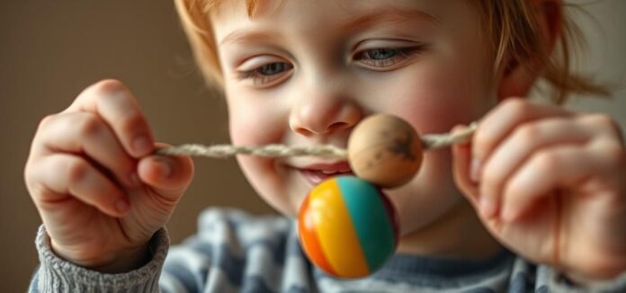 Illustrative Alltagsbeispiele verdeutlichen die Geschicklichkeit der Handmotorik im Einsatz: Das Auffädeln von Perlen erfordert den Pinzettengriff und Hand-Auge-Koordination. Das Schließen von Knöpfen trainiert die Fingerdifferenzierung und beidhändige Koordination. Das Formen und Kneten von Modelliermasse schult die Kraftdosierung und die Wahrnehmung der Hand. All diese Aktivitäten zeigen, wie vielfältig die Handmotorik im täglichen Leben gefordert und gefördert wird.